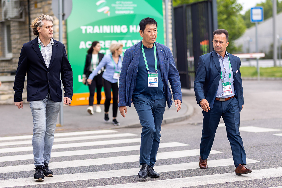 Morinari Watanabe a kontinensbajnokság sajtócsapatának nyilatkozva kiemelte, fontos világverseny zajlik a magyar fővárosban. „Budapestet jól ismerem, nem először vagyok itt, és mindig jól érzem magam a magyar fővárosban. Amit eddig tapasztaltam, azt egy szóval tudom jellemezni: fantasztikus.” – mondta a FIG-elnök, aki hozzátette: ez az rg Eb, az olimpiai ciklus egyik fontos eseménye.
