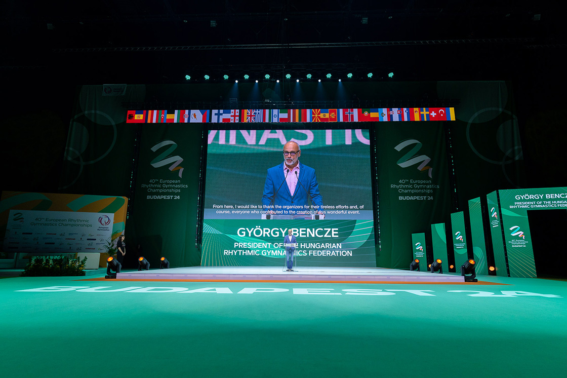 Bencze György, a Magyar Ritmikus Gimnasztika Szövetség elnöke a sportág szépségét emelte ki beszédében. „A ritmikus gimnasztika különleges eleganciát, művészi kifejezőerőt és rendkívüli fizikai teljesítményt ötvöz. Az Európa-bajnokságon résztvevő sportolók hosszú évek kemény munkájával érték el, hogy ma itt lehessenek, ezért kivétel nélkül mindannyiukat a legmélyebb tisztelet illeti meg." – mondta az elnök.